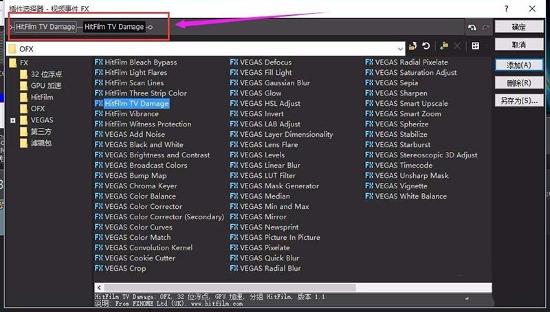 2、隨即打開vegas的濾鏡框,雙擊這個濾鏡,就給視頻添加上了。