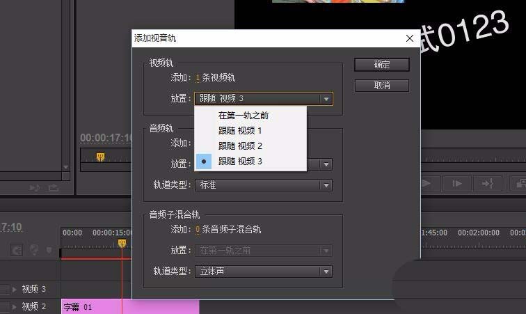 3、在添加視頻軌道的時候,我們可以選擇添加的位置