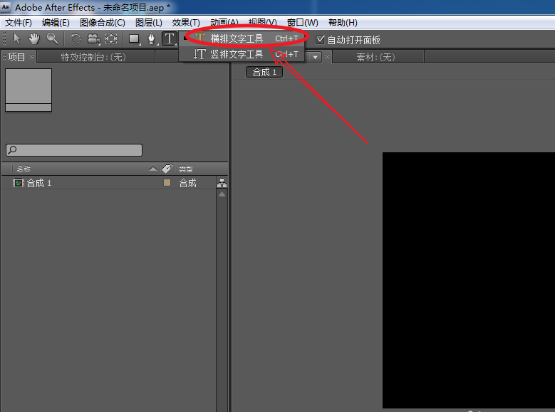 2、在我們的合成面板上單擊輸入內(nèi)容,完成文字的創(chuàng)建。