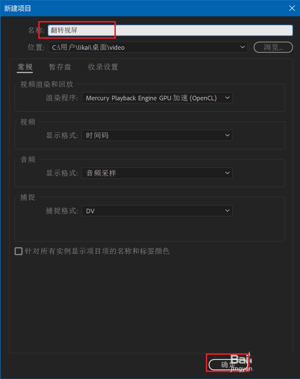 2、填寫項(xiàng)目名稱后點(diǎn)擊確定。