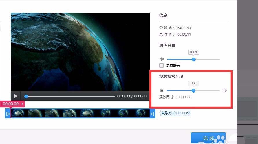4、默認的是正常速度1X,我們可以向左右兩個方向調整視頻的速度