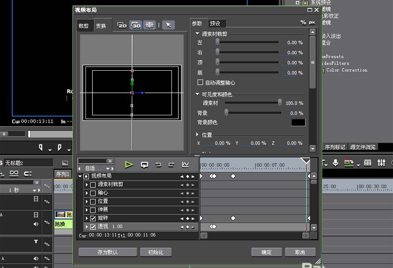 2、雙擊右下角的視頻布局,調出視頻布局對話框,切換到3d選項卡中。