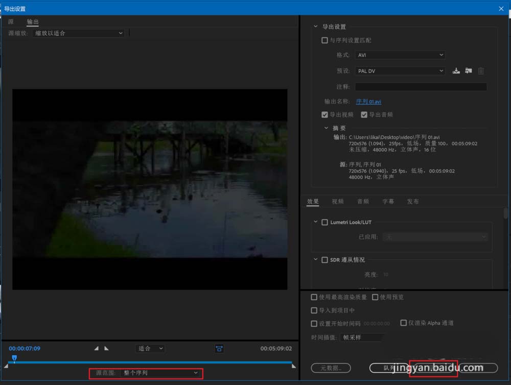 9、按下圖所示進行設置,將修改好的視頻導出即可。