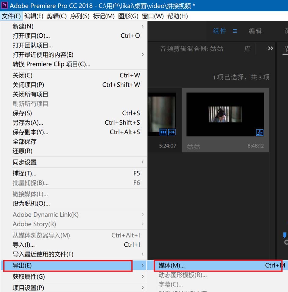 8、調節完畢后,點擊文件,導出,媒體命令。