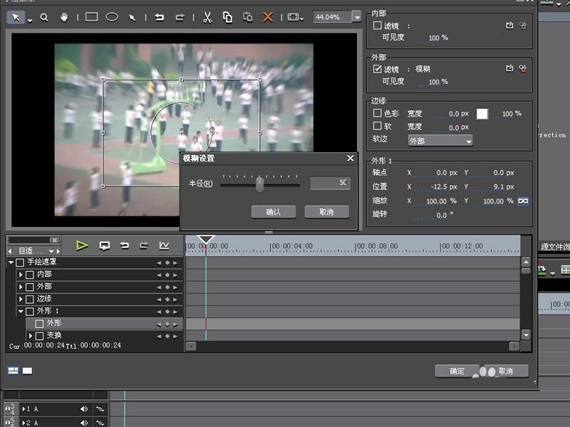 5、設置半徑為50,點擊確定按鈕返回到手繪遮罩對話框,接著點擊確定按鈕。