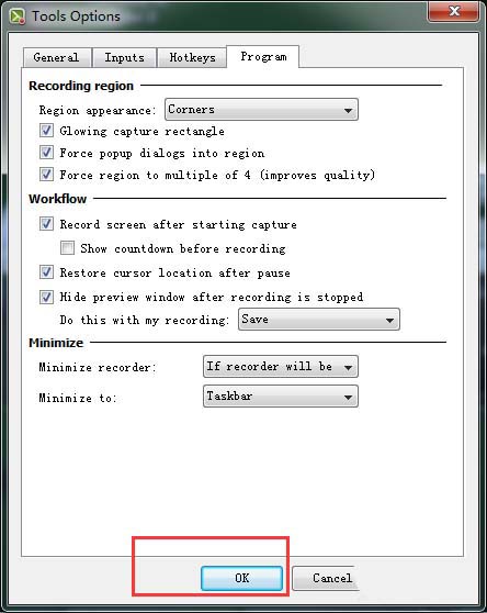 6、最后點擊ok來讓你的所有修改的設置生效。這樣在使用Camtasia錄制視頻的時候就不會再有倒數的提示了。