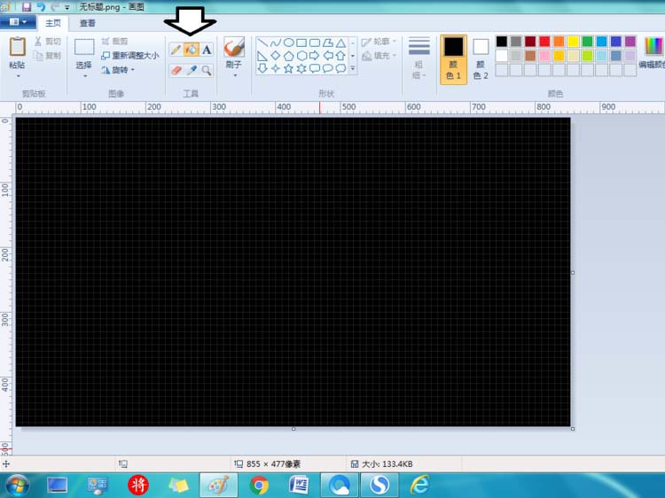 1、先打開畫圖,制作不同顏色的圖片→查看→勾選:標尺和網格線。