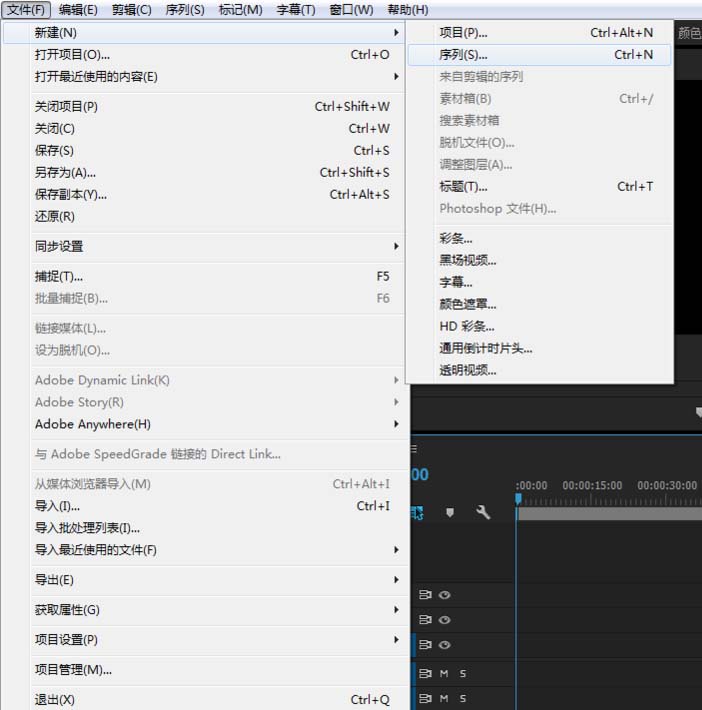 1、新建項(xiàng)目與序列。