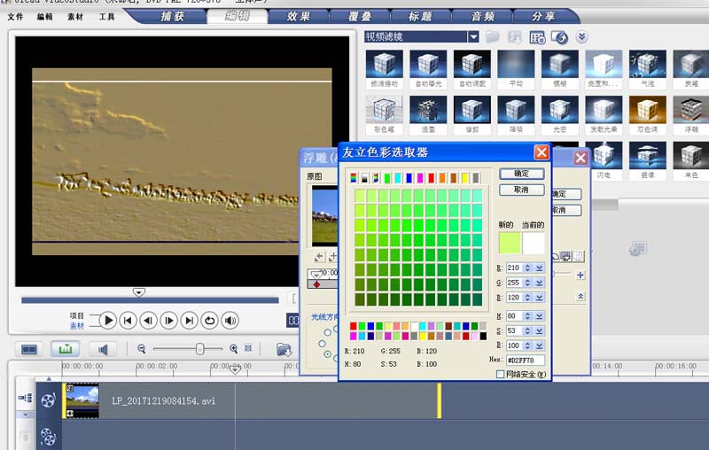 3、接著選擇視頻浮雕色彩,點擊自定義濾鏡按鈕,調出浮雕對話框。
