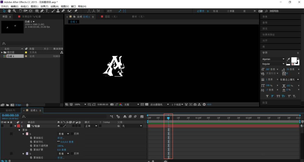 7、關閉B輪廓圖層前面的小眼睛,觀察一下圖形在0秒、10幀、1秒10幀和2秒的變化過程。至此,本特效制作完成。