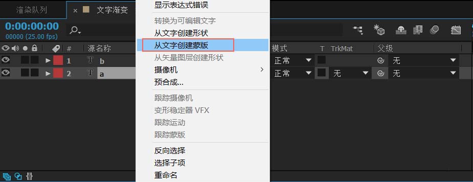 3、右擊文字圖層,在彈出菜單中單擊"從文字創建模板"、分別創建圖層A和圖層B的輪廓圖層;創建完輪廓圖層后刪除步驟2創建的文字圖層;