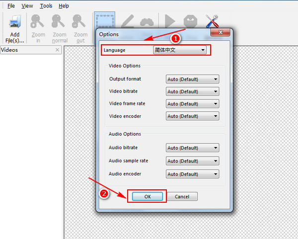 彈出一個新的對話框,在最上面的Language 那里選擇語言,默認是English,點擊旁邊的倒三角下拉箭頭選擇簡體中文就行了,選擇之后點擊“OK”按鈕。現(xiàn)在我們的整個界面就都是中文顯示的了。