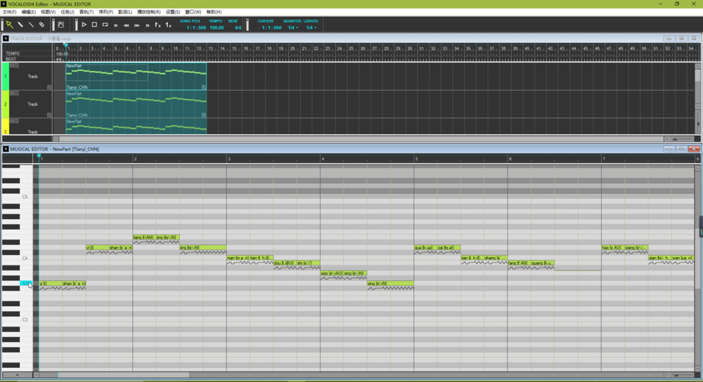 8、輸入歌詞,該歌曲根音符位G3,中文歌詞只用輸入拼音,日語輸入羅馬音。若人聲太小,可以把人聲多復(fù)制幾軌。