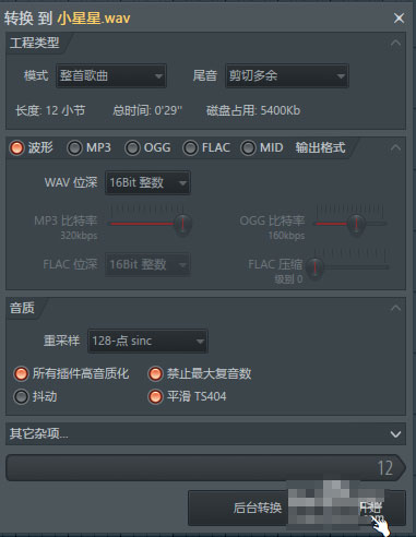 9、導出為波形文件即可。合成速度比較慢,若軌道多也許需要幾分鐘。