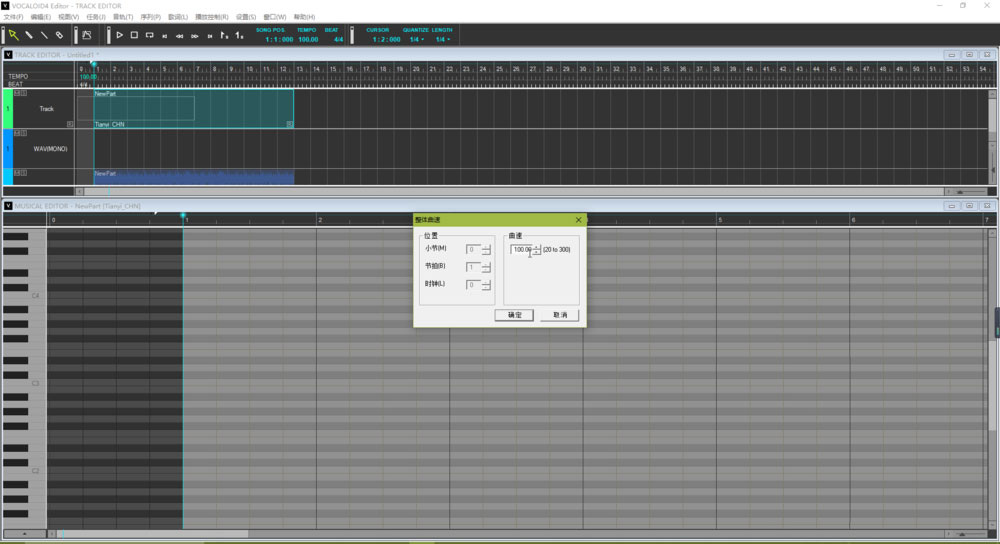7、打開vocaloid,導入剛才導出的波形文件。設(shè)置語速為100,選擇歌手。