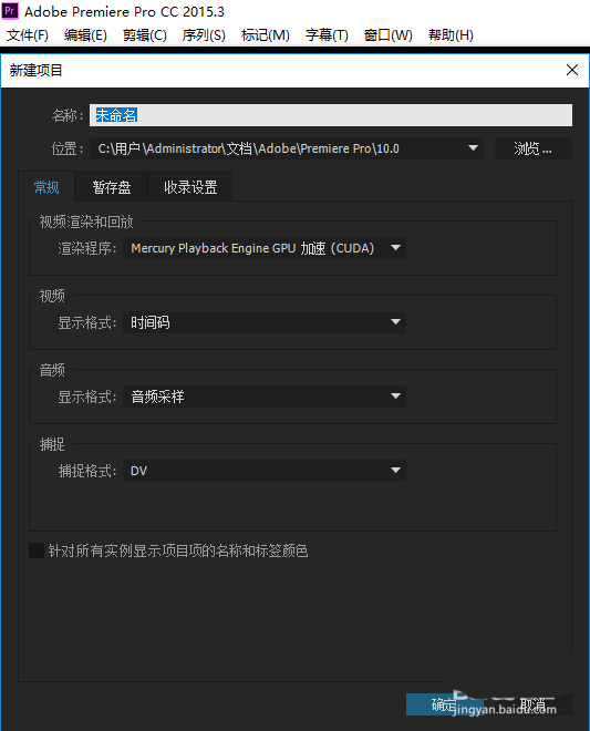 1、雙擊Adobe Premiere Pro CC 2015快捷圖標(biāo),打開軟件,新建一個項目文件。