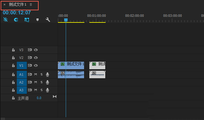 3、創(chuàng)建時間軸,將所要的文件拖動到時間序列上。本文以“測試文件1”為模板建立時間序列。