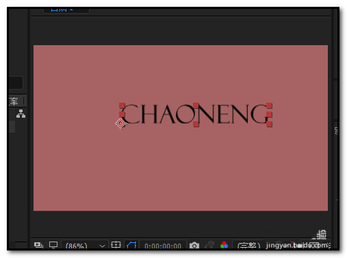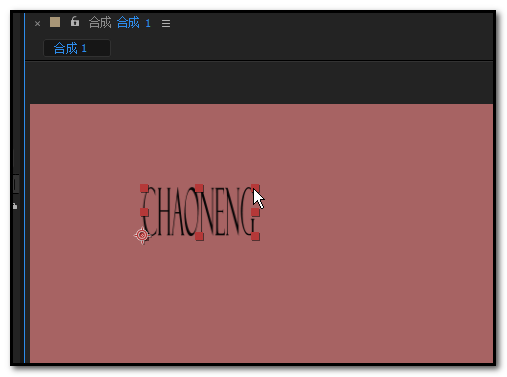1、我們輸入文字后,按下V鍵,選取工具,文字外圍顯示方塊,并有一個小圓圈。