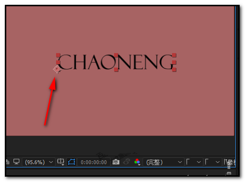 3、這個中心點,我們是可以移動的。按Y鍵,鼠標點住這個小圓圈,點住這個小圓圈,移動目標位置。比如,文字的中間位置。