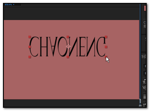 4、然后,鼠標點住文字任意一個方塊,操作縮放文字。比如,鼠標點住右上角的方塊,向下拖,可以把文字給翻轉過來。