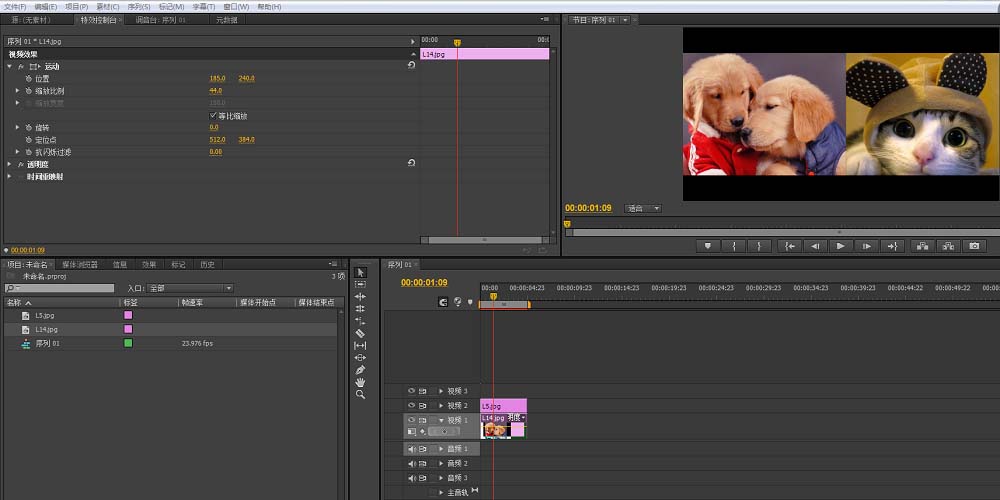 2、導(dǎo)入素材圖片,并且將素材文件插入到視頻軌道。