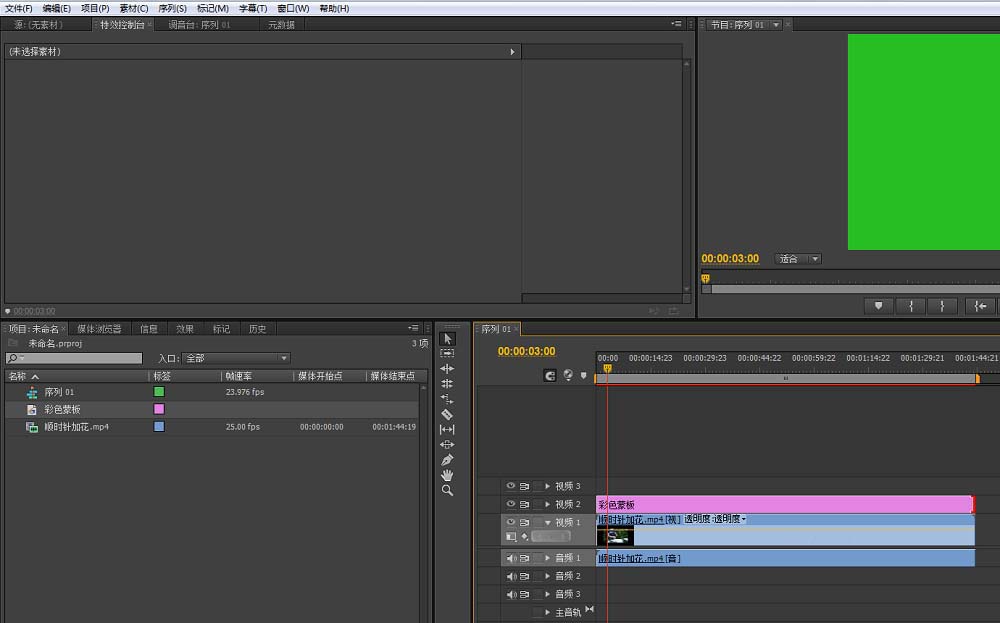 4、選取視頻遮罩的顏色如圖。將該項插入到視頻軌道2上。