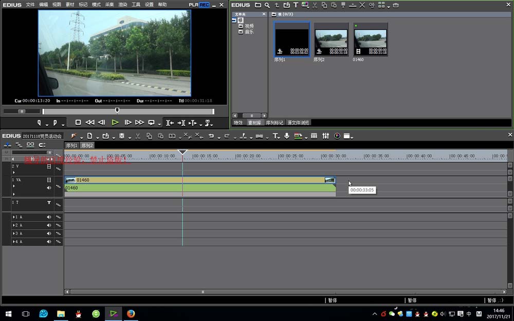 1、首先將視頻文件導(dǎo)入到時間線,直接用拖拽的方式即可。