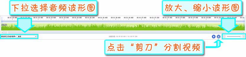 1、首先在時間軸的左下角下拉選擇音樂,波形圖就會出現啦,然后,時間軸的右下角可以放大/縮小波形圖,波形圖放到最大可以精確到幀。接下來,就可以根據波形圖添加、設計字幕啦。