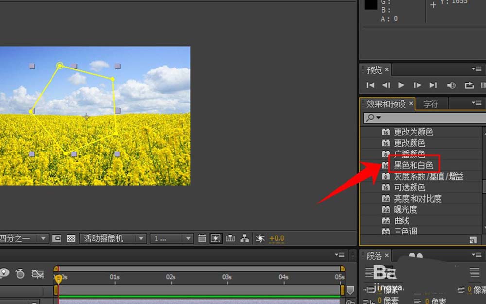1、選擇“黑色和白色”特效。在“顏色校正”的子列表中找到【黑色和白色】,雙擊這個選項。