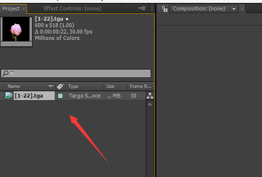 3、設置好參數后,可以看到在project窗口內就出現了,我們的圖片素材,如圖所示: