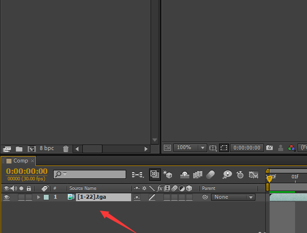 5、創建出新的合成以后,在合成窗口內就出現我們的tga序列圖片,如圖所示: