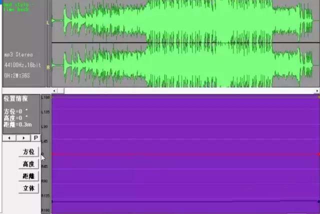 2、如圖所示的上面部分是這首音樂的波形圖,下面是我們可以編輯的3D環繞面板區域。