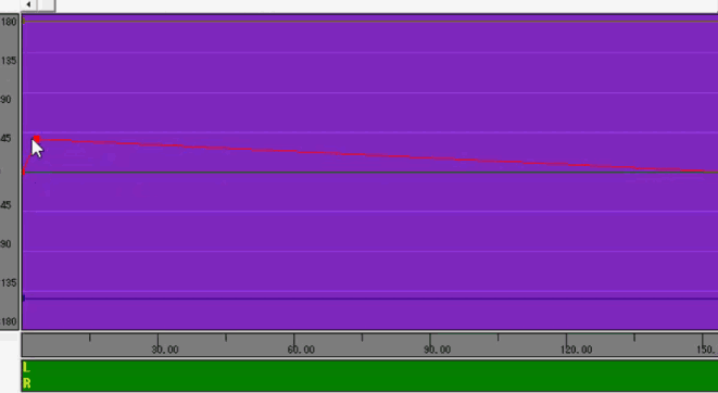 3、其編輯原理就是中間這條紅線代表的是正常聽音樂是的頻率,而我們將這根紅線往上面拖動就代表著音樂偏向你的左耳或者右耳,也可以直接想如圖所示那樣拖動,將其拖至你認為合適的位置即可。
