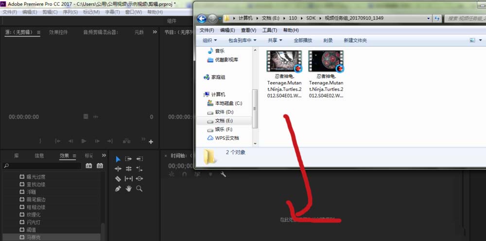 2、把需要剪輯的視頻拖動到紅色箭頭指向的地方,導入成功,會出現第2個圖