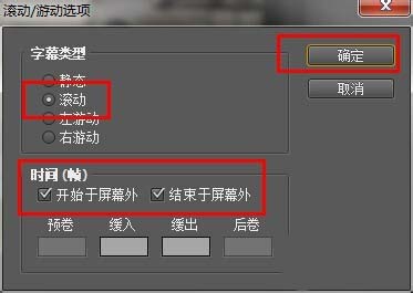 4、點擊左上角的“滾動/游動選項”,設(shè)置字幕類型和時間。