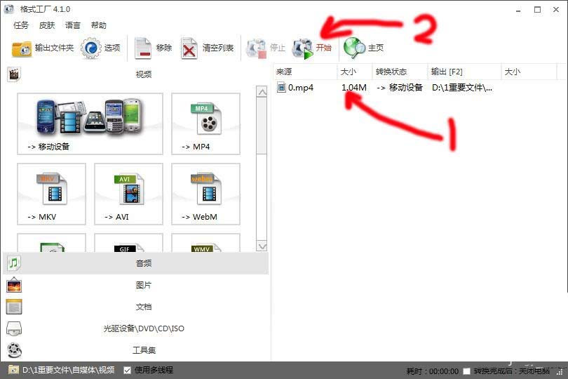 5、這一步得到的視頻文件是avi格式的,文件的體積太大,不方便存在手機(jī)里面使用,