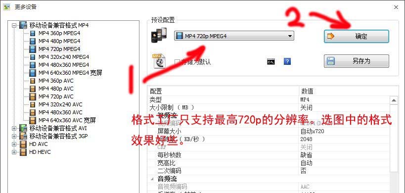 7、然后選擇轉(zhuǎn)換格式,格式工廠最多支持720p的,選擇圖中的設(shè)置,效果會(huì)比較好,