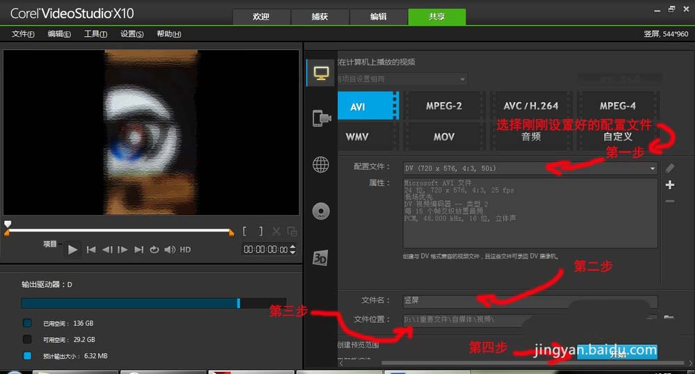 1、請(qǐng)按照?qǐng)D中的步驟,進(jìn)行先后順序的操作,強(qiáng)調(diào)一下,需要選擇avi格式的,第四步,選擇加號(hào),