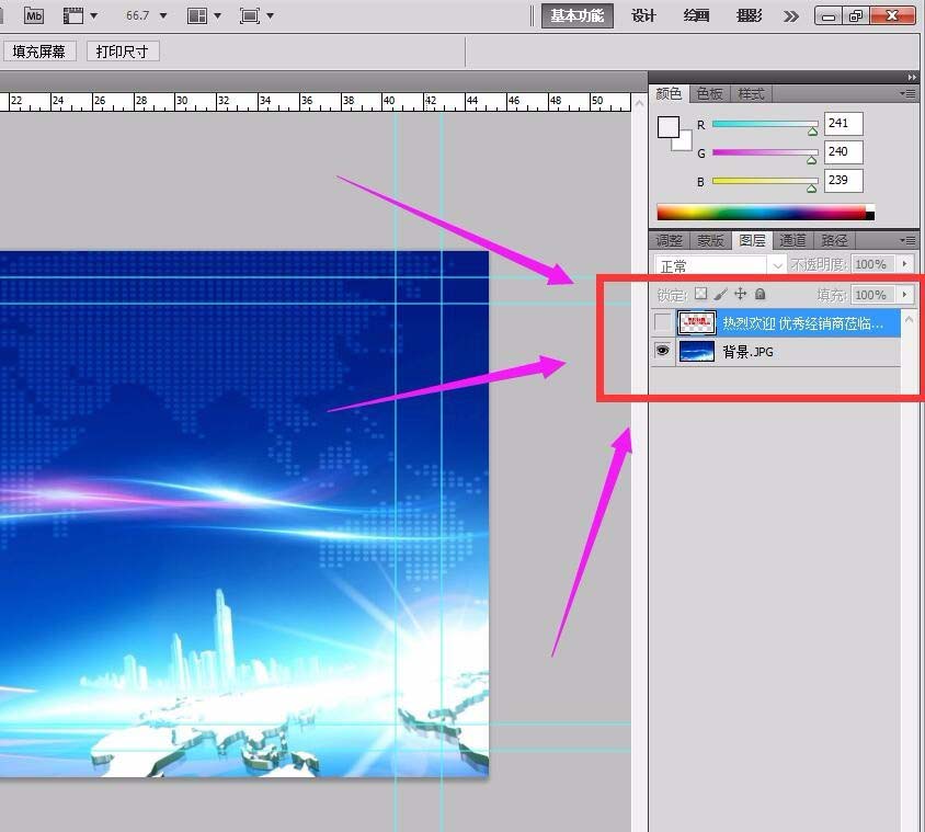 5、在打開的photoshop文件中,我們可以看到輸出的就是一個多圖層合成的PS文件,我們可以進行各種的修飾加工了。