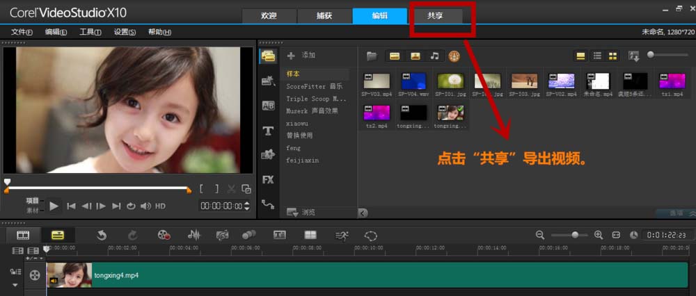 4、最后點擊“分享”即可導出視頻。