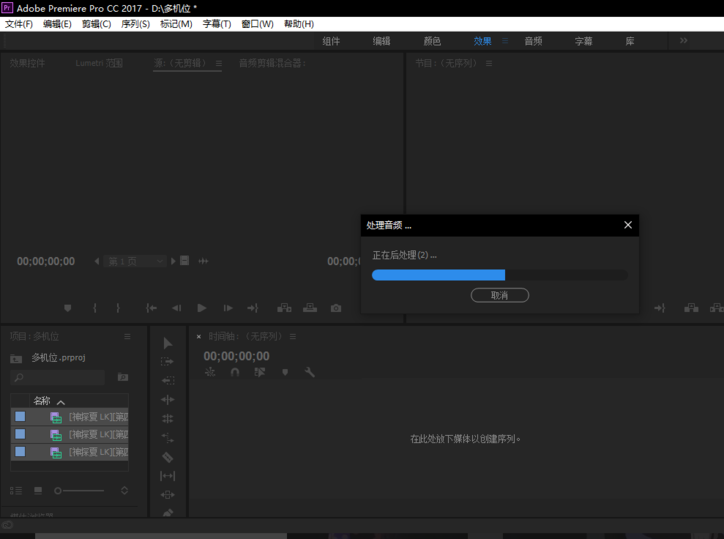 5、點擊確定之火,如果在第四步中我們選擇了音頻的多機位混剪,那么這里我們是需要處理一段時間的!