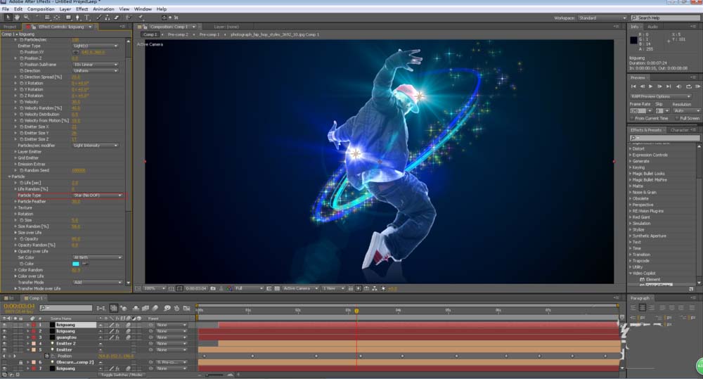 8、然后,再將粒子光線那個(gè)復(fù)制出來兩個(gè),調(diào)整他們成發(fā)光的球和星星的形式作為點(diǎn)綴。