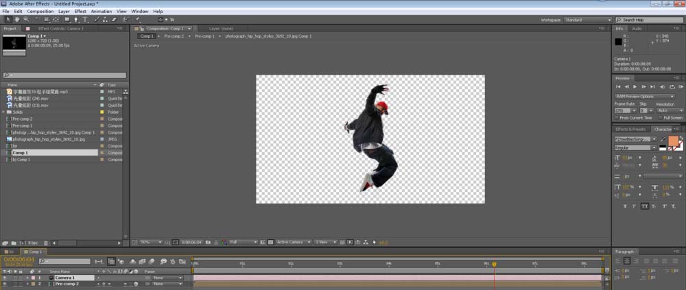 1、首先,導(dǎo)入素材,我這里做的是讓光線圍繞著一個(gè)有動(dòng)畫的人穿梭的效果,人物動(dòng)畫的部分就省略了,可以用木偶工具做。新建合成,將素材拖進(jìn)去,然后打開三維層。