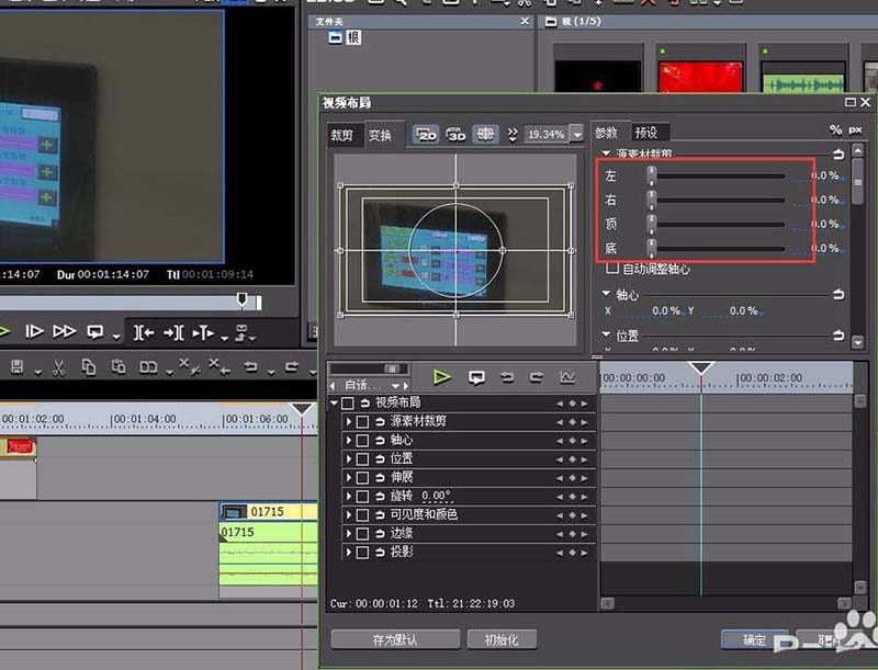 4、打開素材的“布局”命令,快捷鍵是F7,我們可以通過布局命令菜單中的第一項“原素材裁剪”進行剪裁。