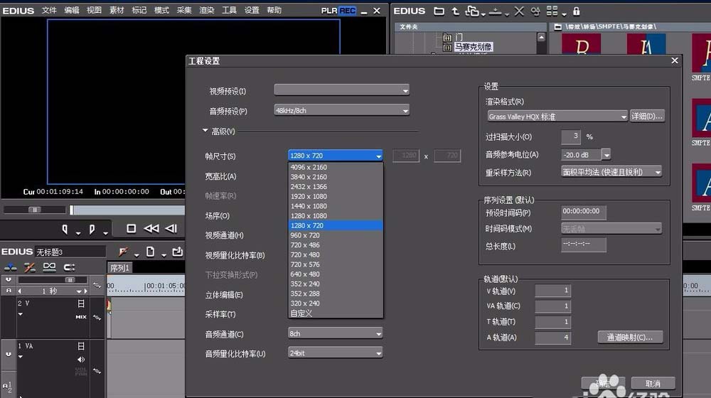 2、根據我們拍攝的視頻素材建立新的工程文件,一般是新建為高清尺寸的高清工程。