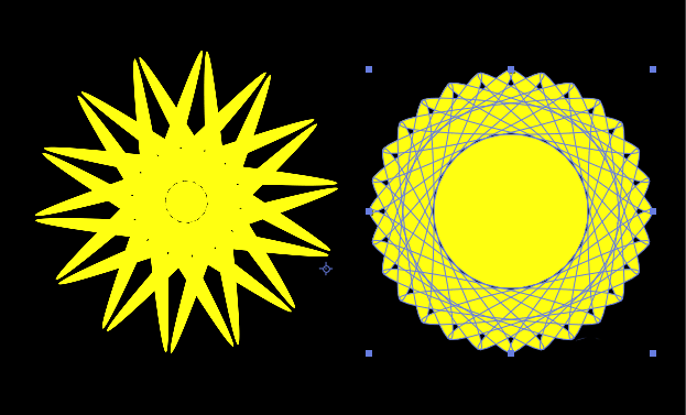 4、通過設(shè)置我們可以畫出常見的四葉草(由四邊形Polygon變形而來)和輻射線(具有30個(gè)頂點(diǎn)的星形),讀者可以自己動(dòng)手畫出更多不可思議的圖形來。