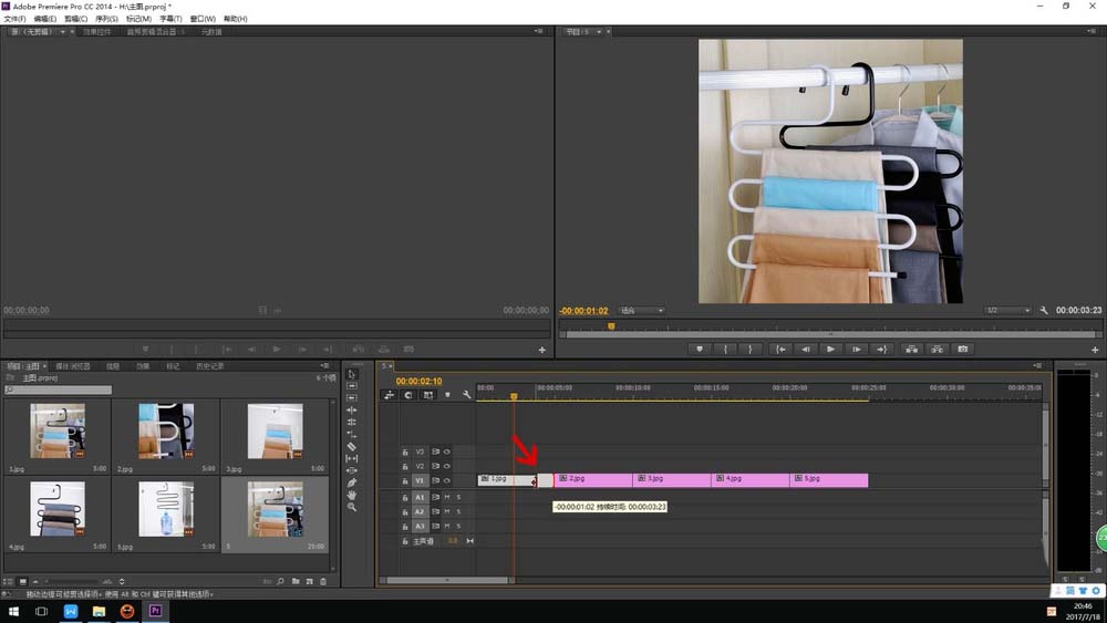2、把圖片直接拖拽到時間線里(會根據我們圖的尺寸,產生一個相同尺寸的序列)。