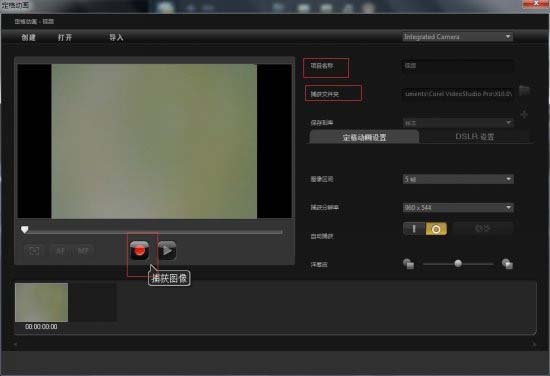 3、將需要制作定格動畫的物體對準(zhǔn)攝像頭,做一個動作點擊一下捕獲圖像,也可以將視頻切換到自動捕獲上,自動捕獲需要對視頻設(shè)置速度,點擊自動捕獲按鈕旁邊的時間設(shè)置就可以了。