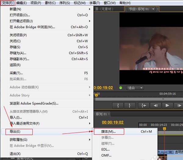 6、重影效果添加完畢后,就可以按空格鍵播放下視頻預覽下效果啦,覺得效果還不錯就可以保存成視頻了。點擊菜單欄上的“文件”選擇“導出”--“媒體”。