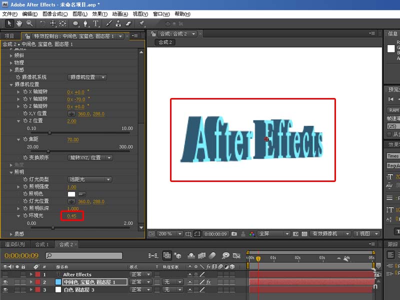 8、接著點開照明,將環境光設置為0.45,增加文字亮度,如下圖: